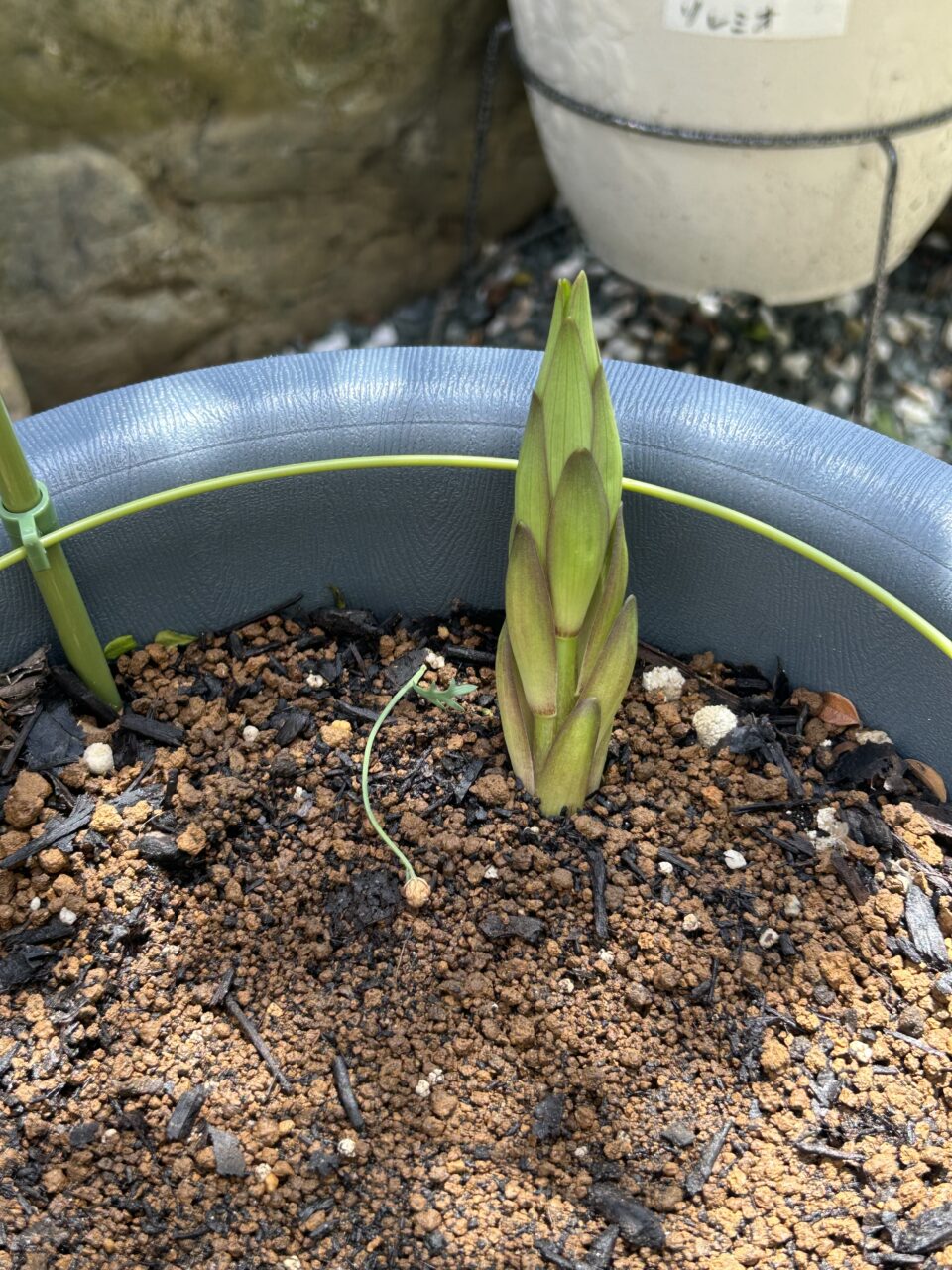 「カサブランカちゃんはいつまでお寝んねしてるんかねーーー?」「発芽するのわすれてるな??」と言いながら表面を触っていたところ、あれ?なんだこれ?ゴミ?ん???? いやーーーー芽が出てるやん!!!!