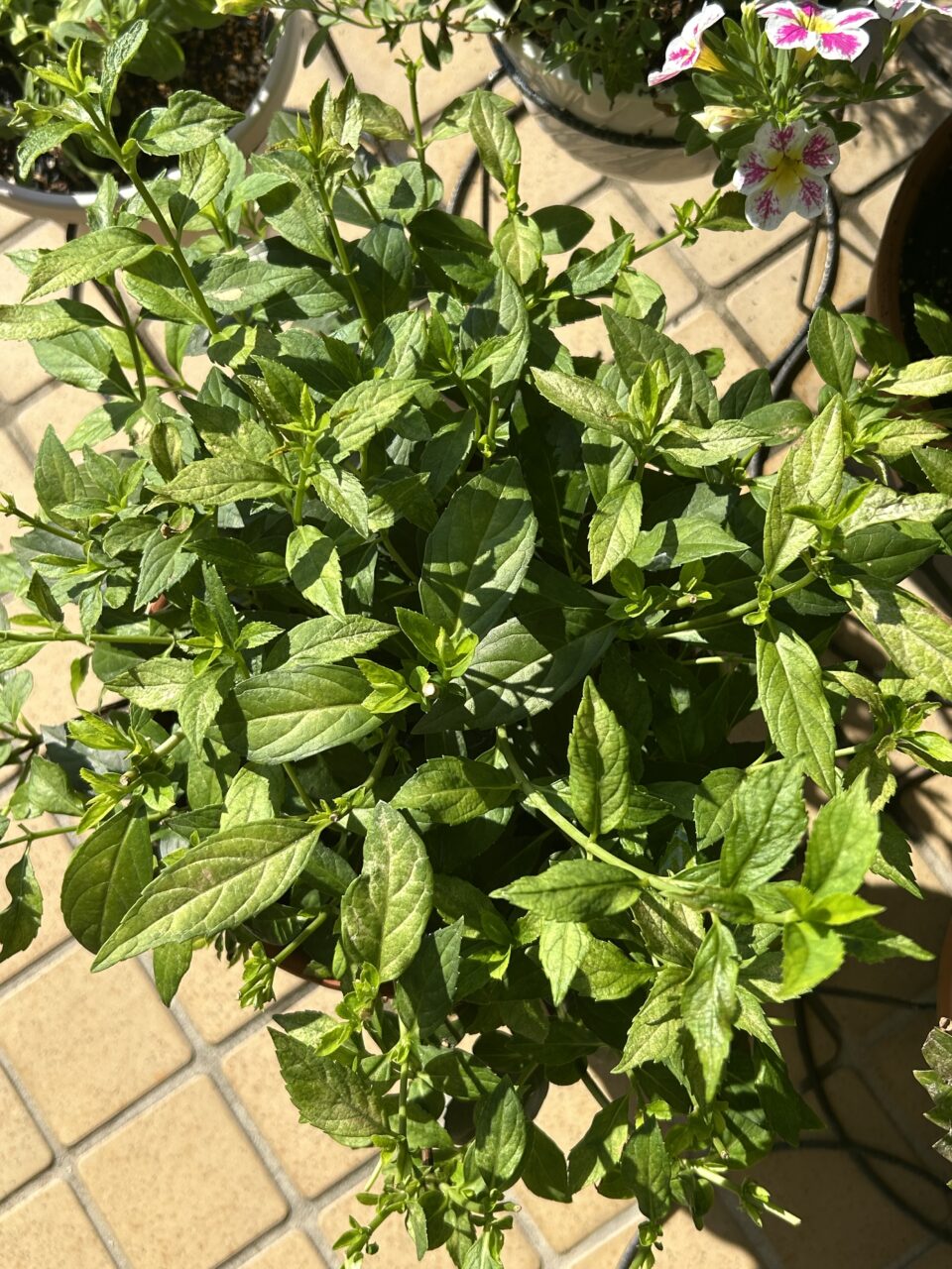 今朝は朝日がとても輝かしく、玄関ポーチのお花たちも日光浴ができてうれしそうです。